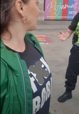 Anyhow, one of the police officers pointed out that the slogan on the T-shirt she was wearing could be considered offensive to some people.